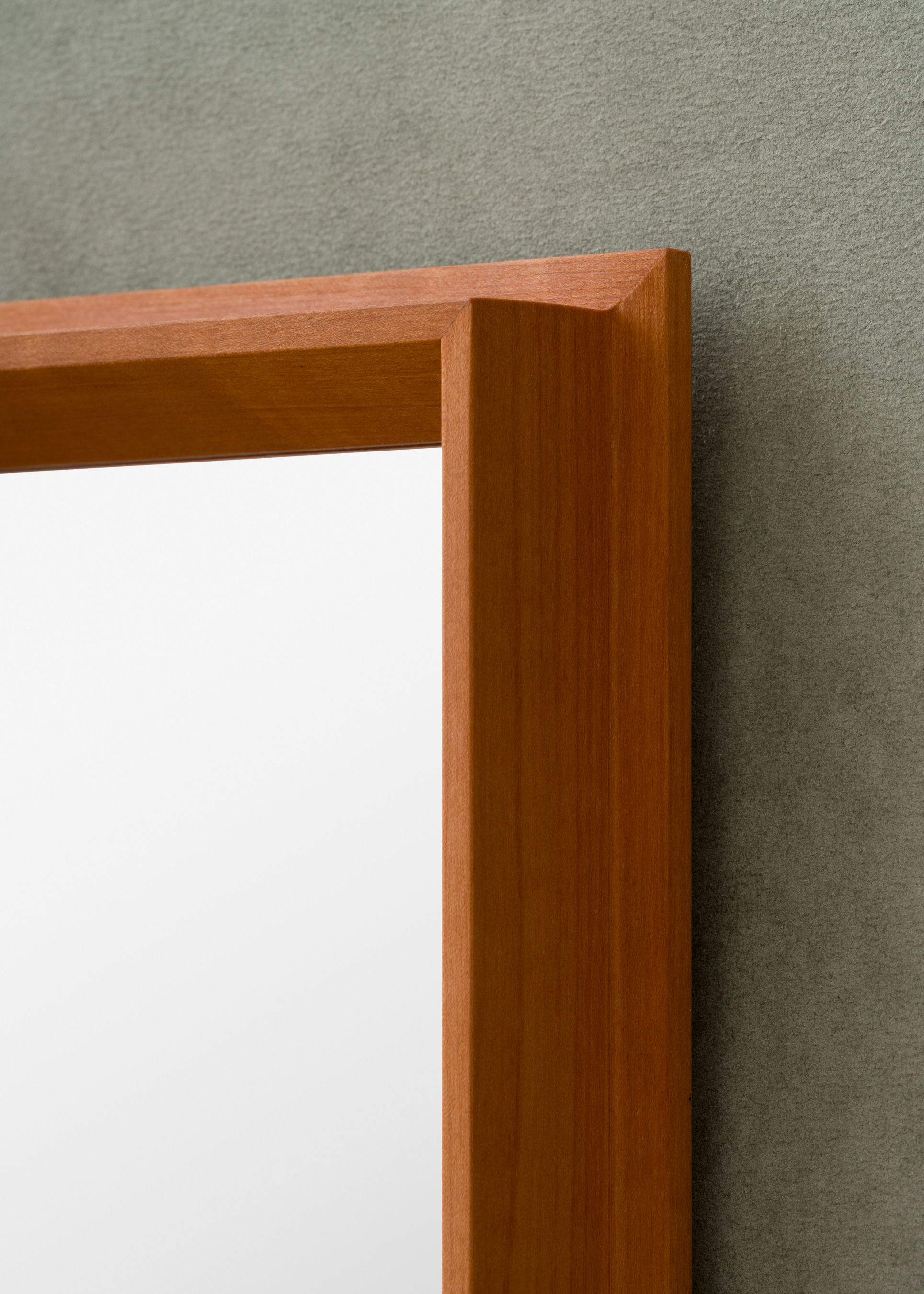 The MO1 displays antique glass sheets with engravings of hands and flowers. There is a lightness to the MO1 profile that speaks to the improvised action of picking a flower next to an old pear or walnut tree where one imagines the wood for the frames comes from.