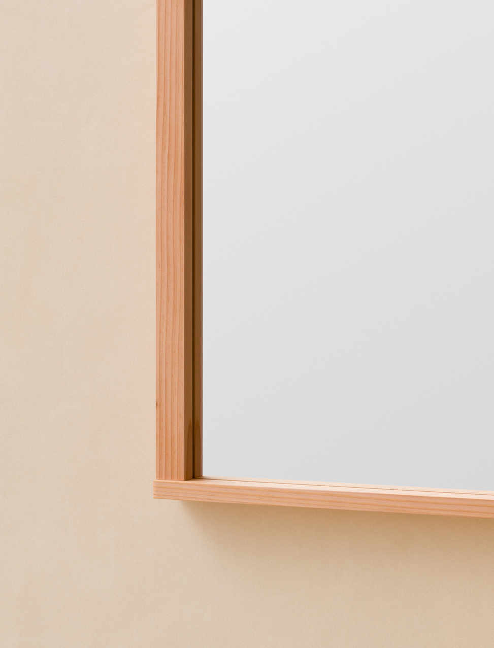 The AD profiles are without oblique cut edges and use rectangular pieces of wood, trimmed and turned to perfection. The AD2 Mirror is horizontally slim at the top and bottom, connected by two wide vertical pieces. The profile is simple yet dynamic, the Douglas Fir is warm and inviting.
