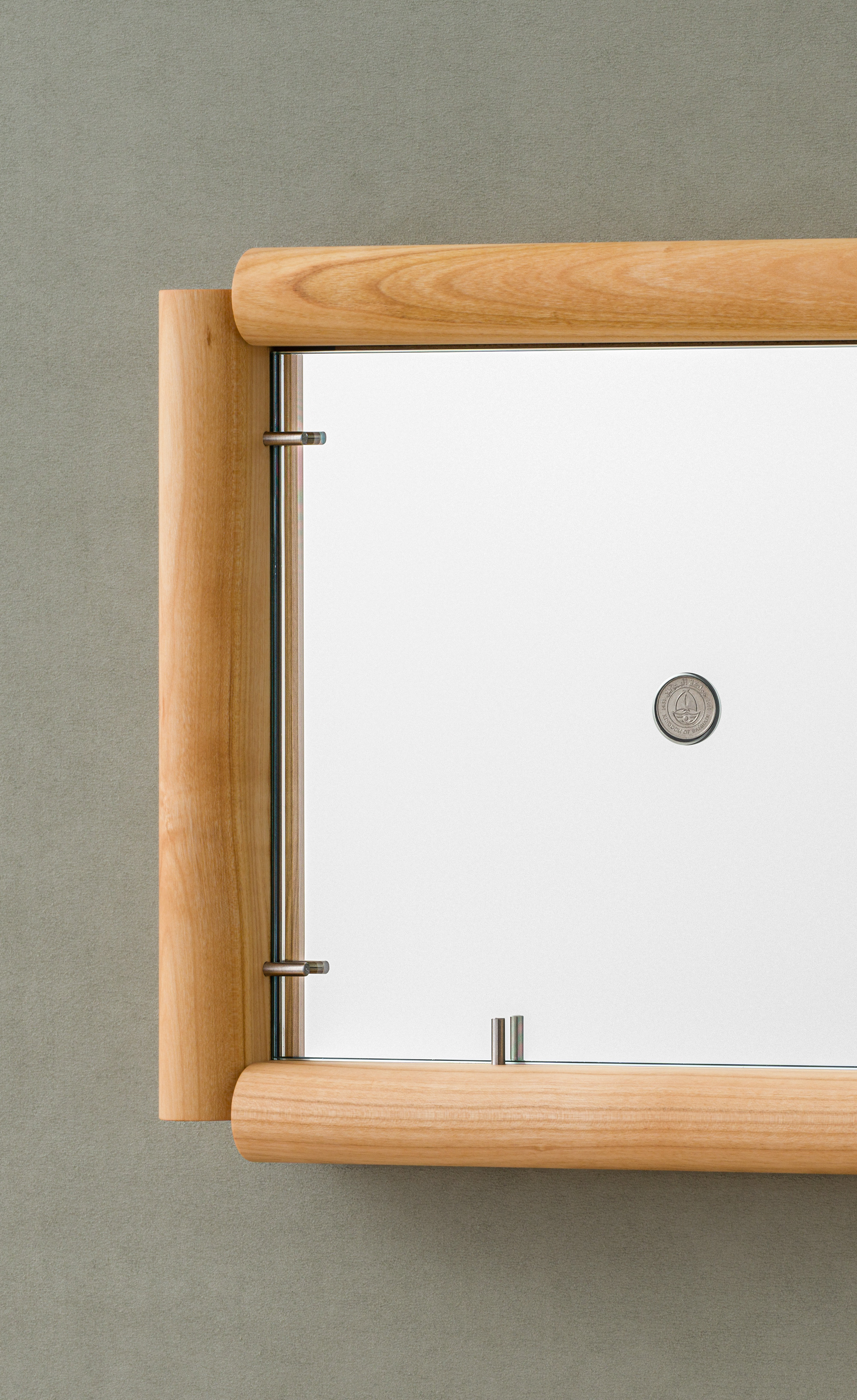 The limited edition mirror serves as a passe-partout with small round cutouts containing Bahraini coins. Beyond their miniature iconography and rich cultural value, the coins also tell tales that reflect the hands of the designers who brought them in front of you.