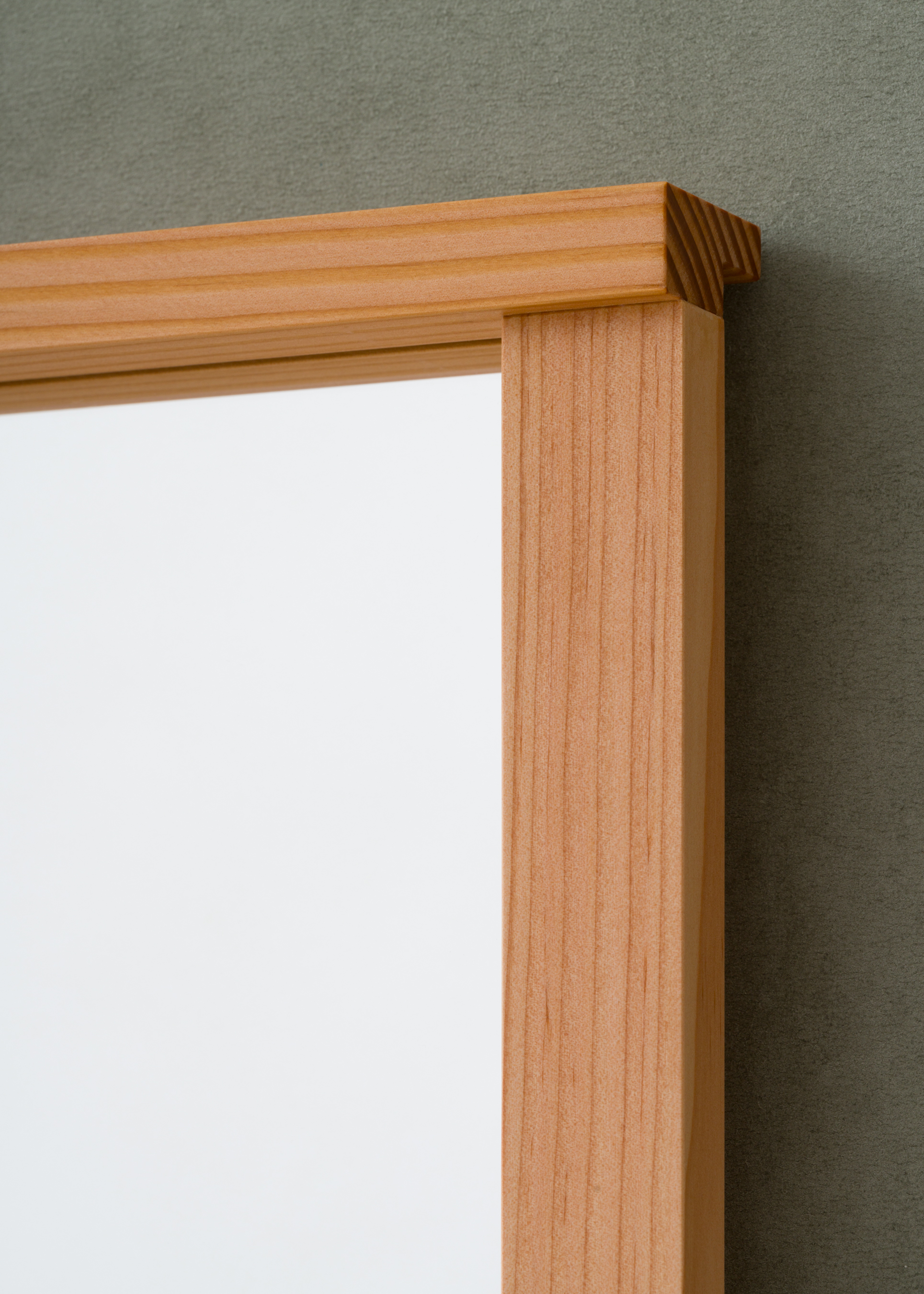 The AD profiles are without oblique cut edges and use rectangular pieces of wood, trimmed and turned to perfection. The AD2 Mirror is horizontally slim at the top and bottom, connected by two wide vertical pieces. The profile is simple yet dynamic, the Douglas Fir is warm and inviting.